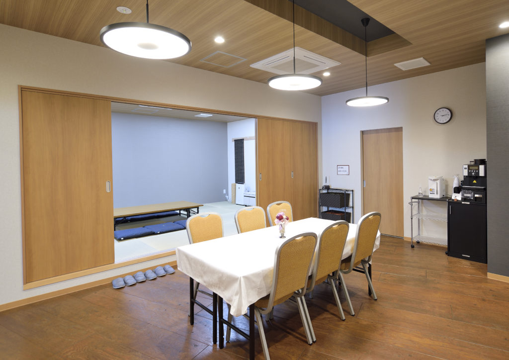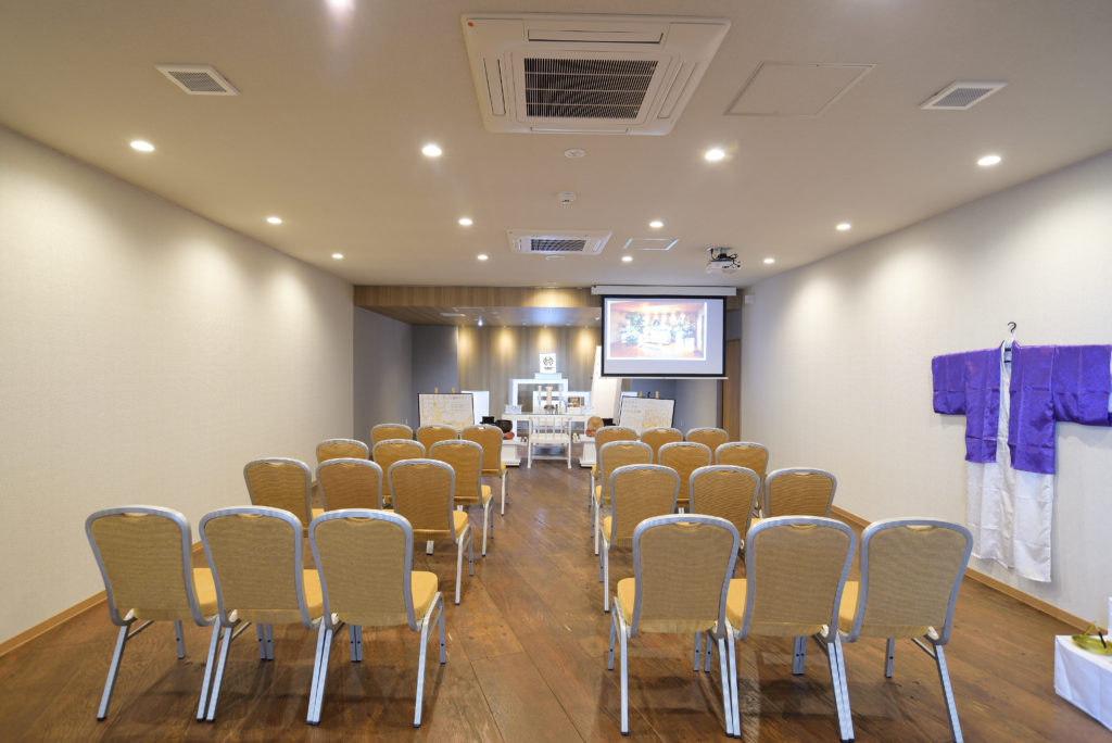 ホールでは、60名前後の家族葬を行うことができ、一般のみなさまもご参列されるお葬式の場合は、全館貸切でゆったりと。火葬式プランに対応した小規模スペースも完備しております。