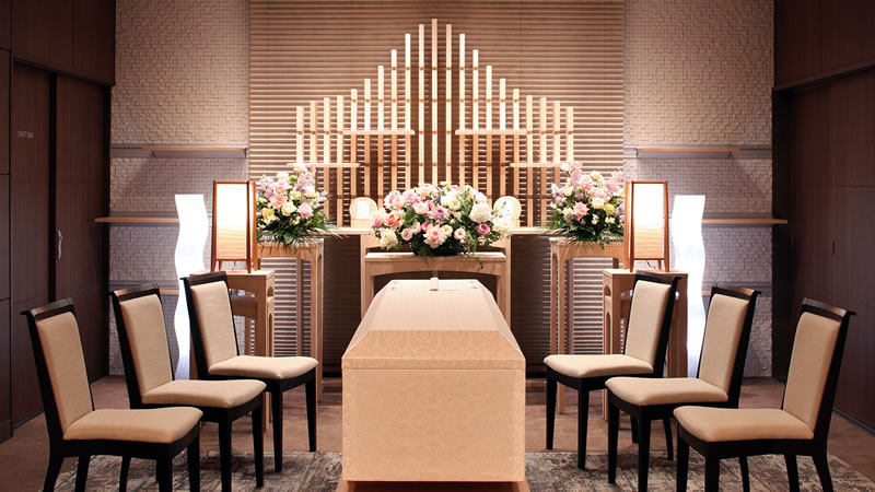シンプルでモダンなホールでは、故人様らしさを表現した空間を表現することが可能です。