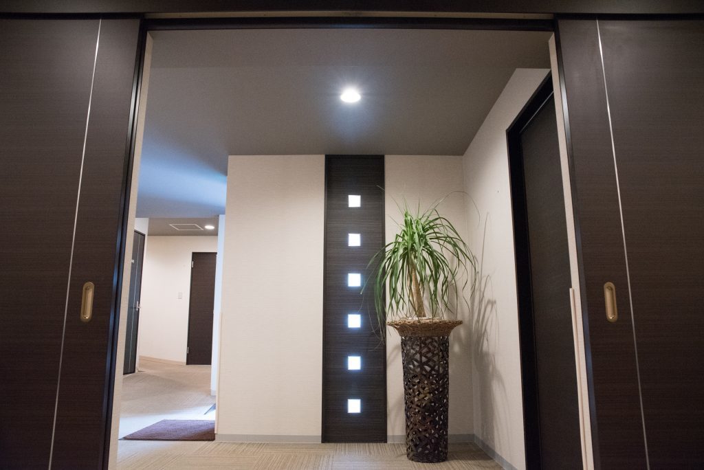 東西で分割したホールでは、20名前後の家族葬を。一般のみなさまもご参列されるお葬式の場合は、全館貸切でゆったりと。「おくりびと25」プランに対応した小規模スペースも完備しております。